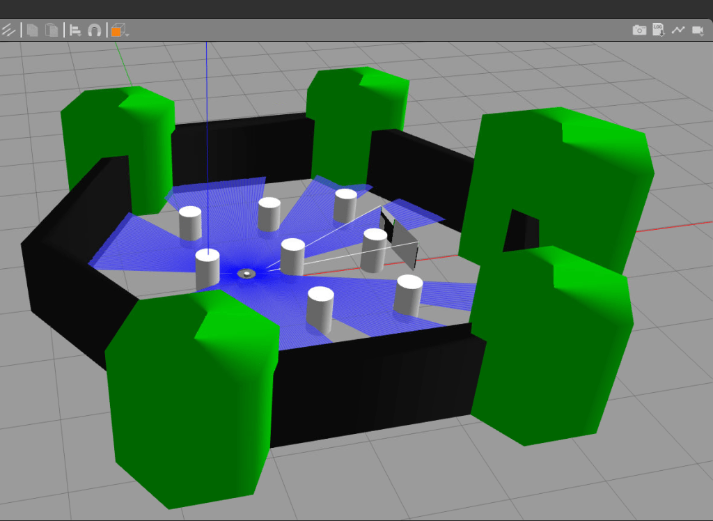 Đợi 1 lúc để Gazebo được bật lên, bình thường nó đã lâu rồi, chạy giả lập trong docker container thì phải lâu hơn chút. Dưới đây là thành quả.